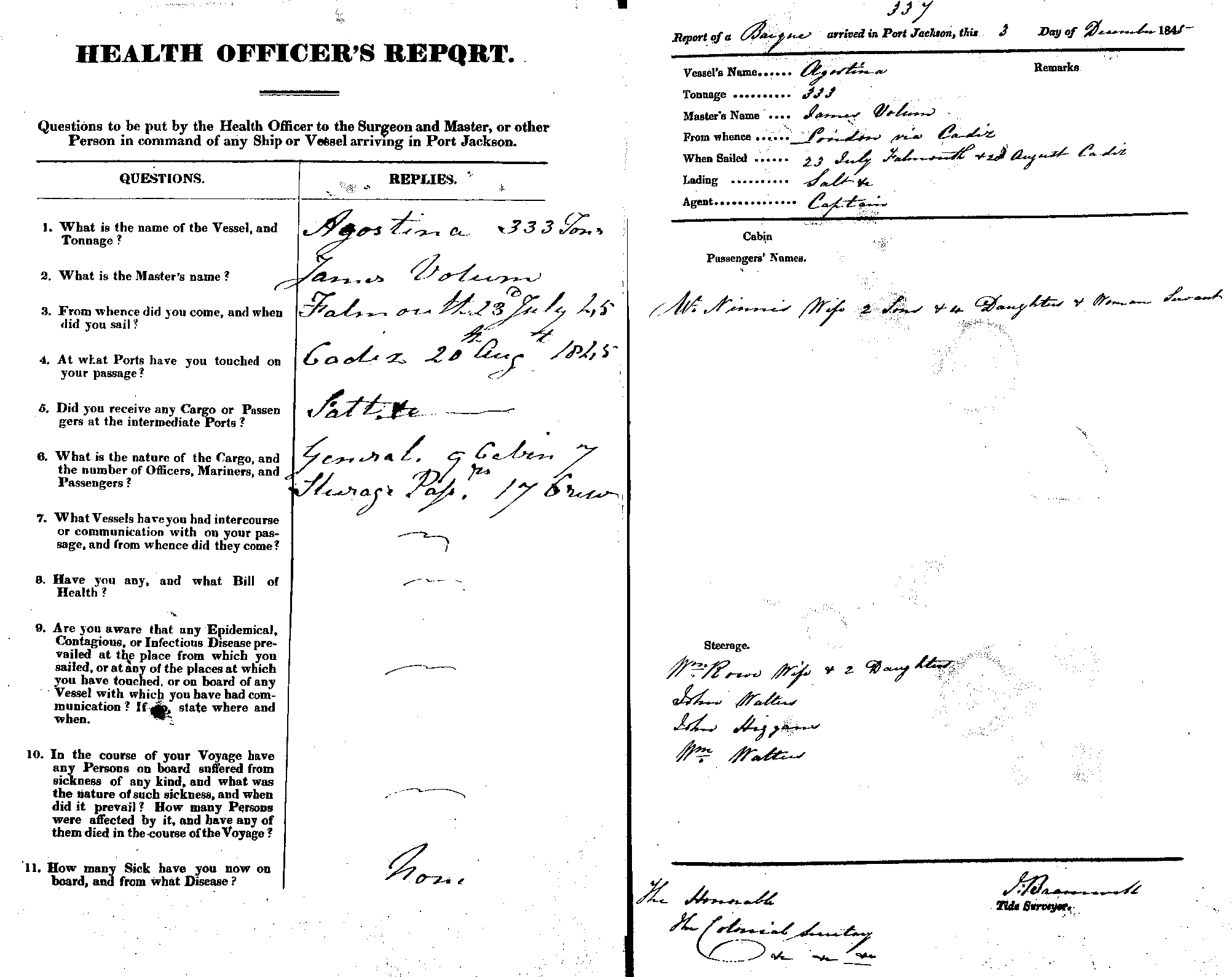 Agostina to Sydney, New South Wales, Australia on 23 Jul 1845 from Falmouth,